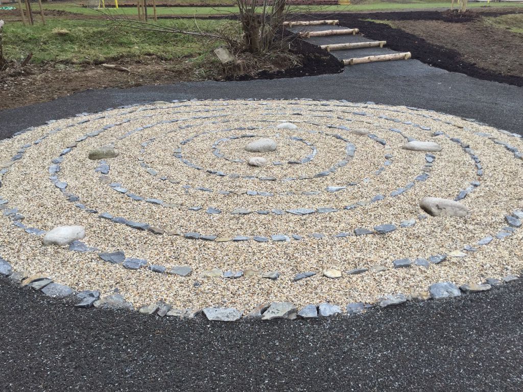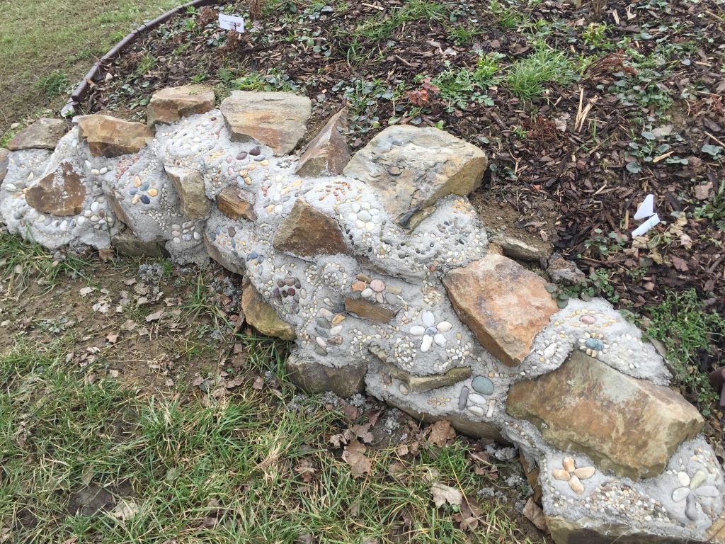 Hmatová zídka – do betonu budou vtlačeny různé předměty (kamínky různých tvarů, plastové uzávěry apod.), které lze poslepu prozkoumávat hmatem.