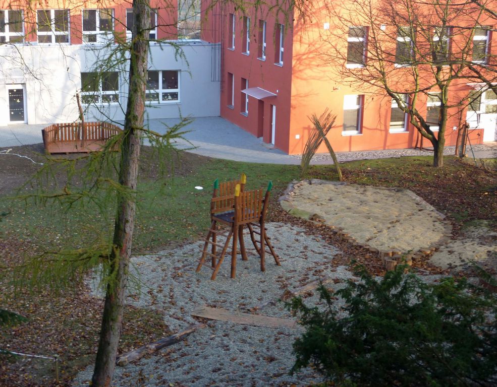 Přírodní učebna s lavicemi – povrch učebny a jejího okolí je z mechanicky zpevněného kameniva, vodopropustný, přírodního charakteru. Lavice budou vyrobeny z půlené kulatiny, která bude upevněna na nožkách opět z půlené kulatiny. Celá učebna bude do budoucna porostlá plazivými rostlinami.